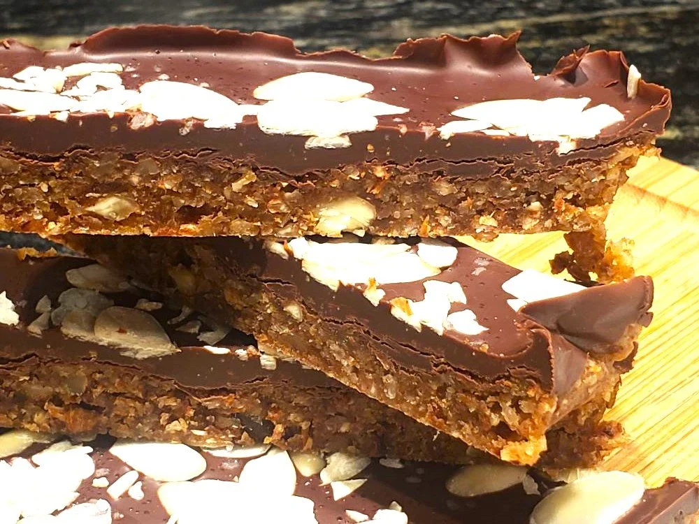 These bars are a delicious and nutritious treat. Made in only a few minutes, with minimal ingredients, they are great to have in the fridge for when you need a little something sweet. Cut into squares, triangles, bars with a sharp knife or into hearts for a Valentine’s themed indulgence.