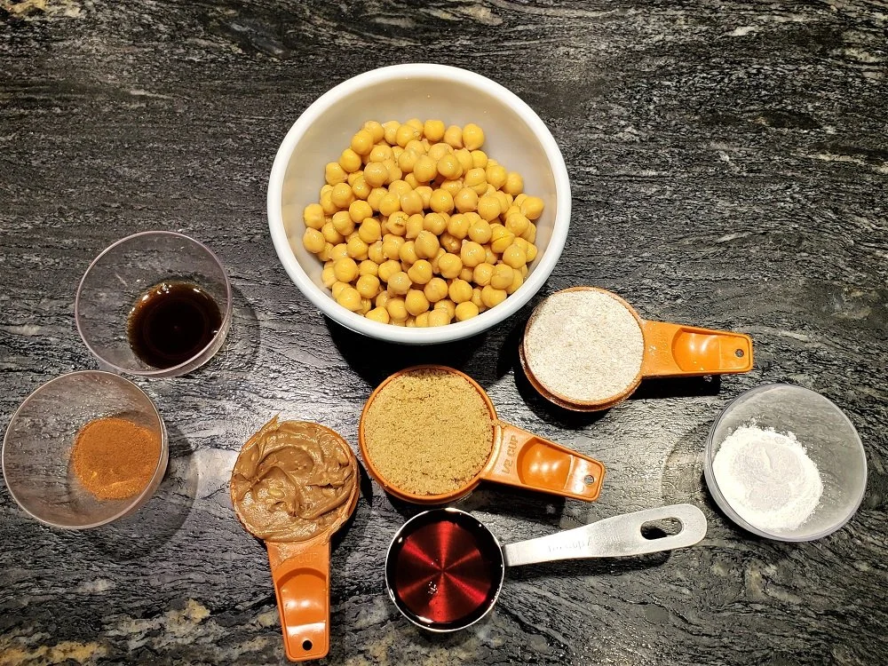 Add the chickpeas, peanut butter, brown sugar, maple syrup, vanilla, oat flour, baking powder and cinnamon to your food processor and whirl until smooth.