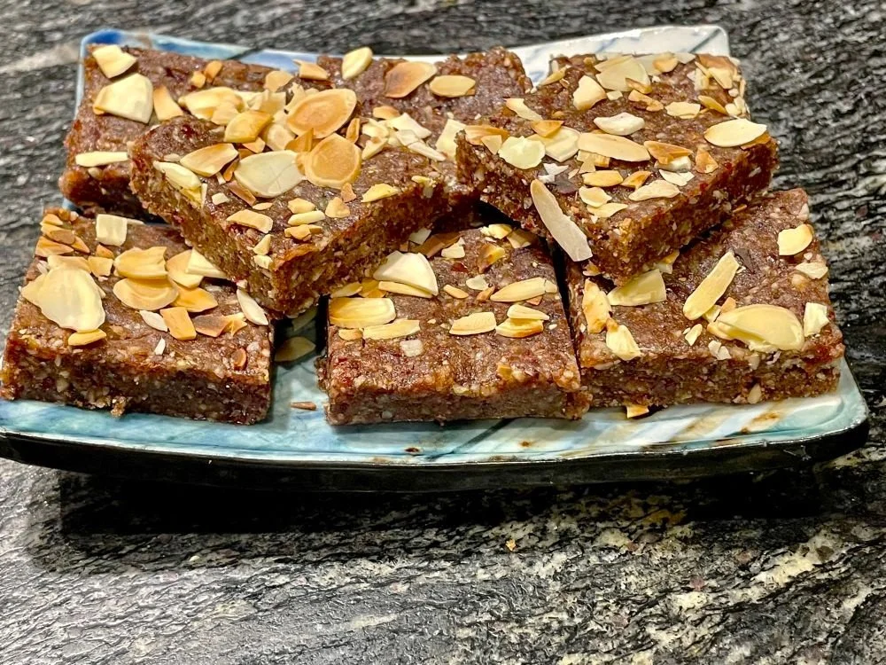 Fruit and Nut Squares are a perfect addition to your holiday treat offerings as they are a festive fare that doesn’t contain chocolate, and have a delicious light spicy flavour reminiscent of a fruit cake. Even those who don’t fancy traditional fruit cake will like these chewy bites of goodness filled with a combination of dates and cranberries, nuts of your choice and a few extra ingredients to give it a little brightness and crunch. Fruit and Nut Squares are a no-bake square and quick to make. Wholesome and wonderful, they will become a holiday tradition in your home as they are now in ours!