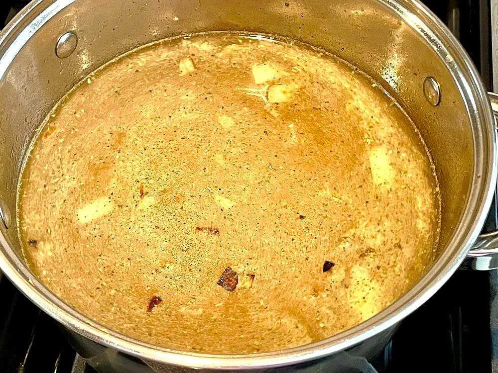 Add the broth, stir and bring to a boil. Turn down the heat to medium-low and allow to simmer for 10 minutes.