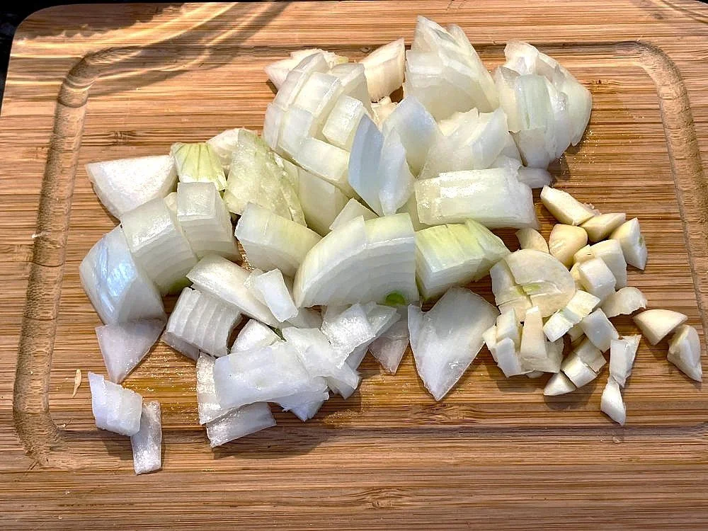 Add the onion and garlic to the pot and sauté until fragrant – about 2-3 minutes.