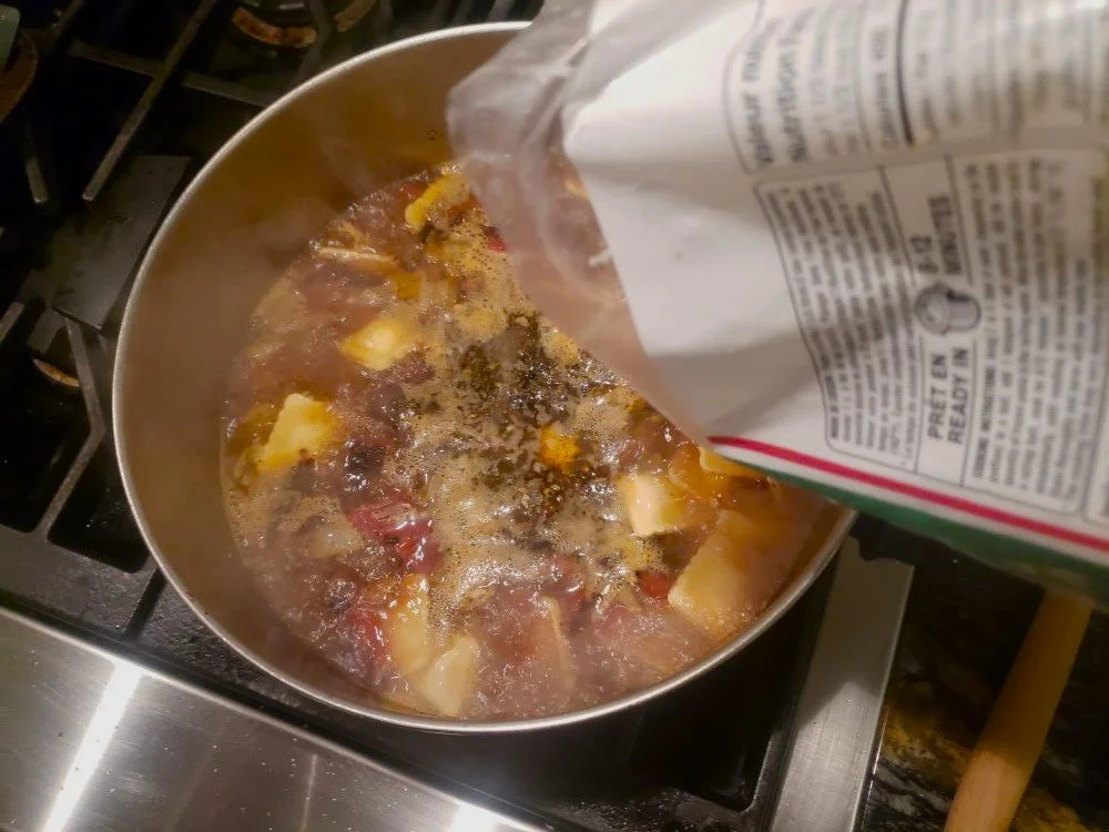 After all the cooking and indulgent holiday eating, this savoury soup is a welcome meal on a cold January day. It is nutritious, delicious, hearty but not heavy, and best of all, it’s ready in less than a half hour. Don’t let the list of ingredients deter you from making the soup – most are herbs and pantry items you have!
