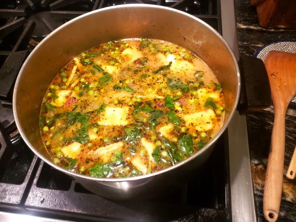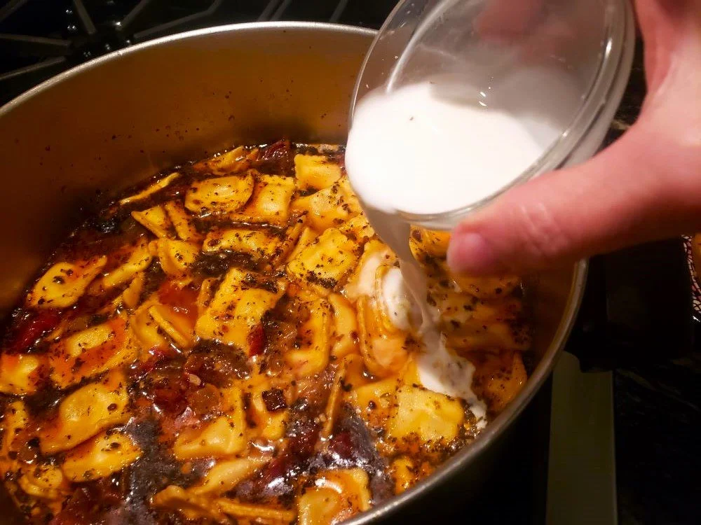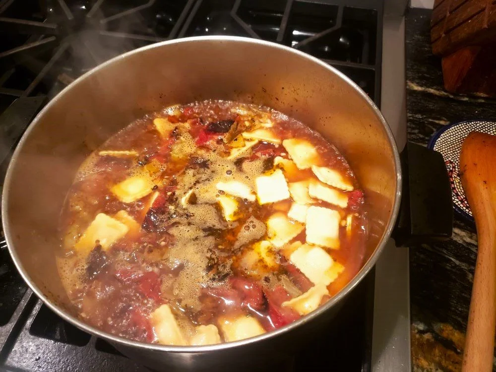 Add the stuffed pasta of your choice and cook, stirring occasionally, about 5 minutes for fresh and 10 minutes for frozen, until the pasta is al dente.