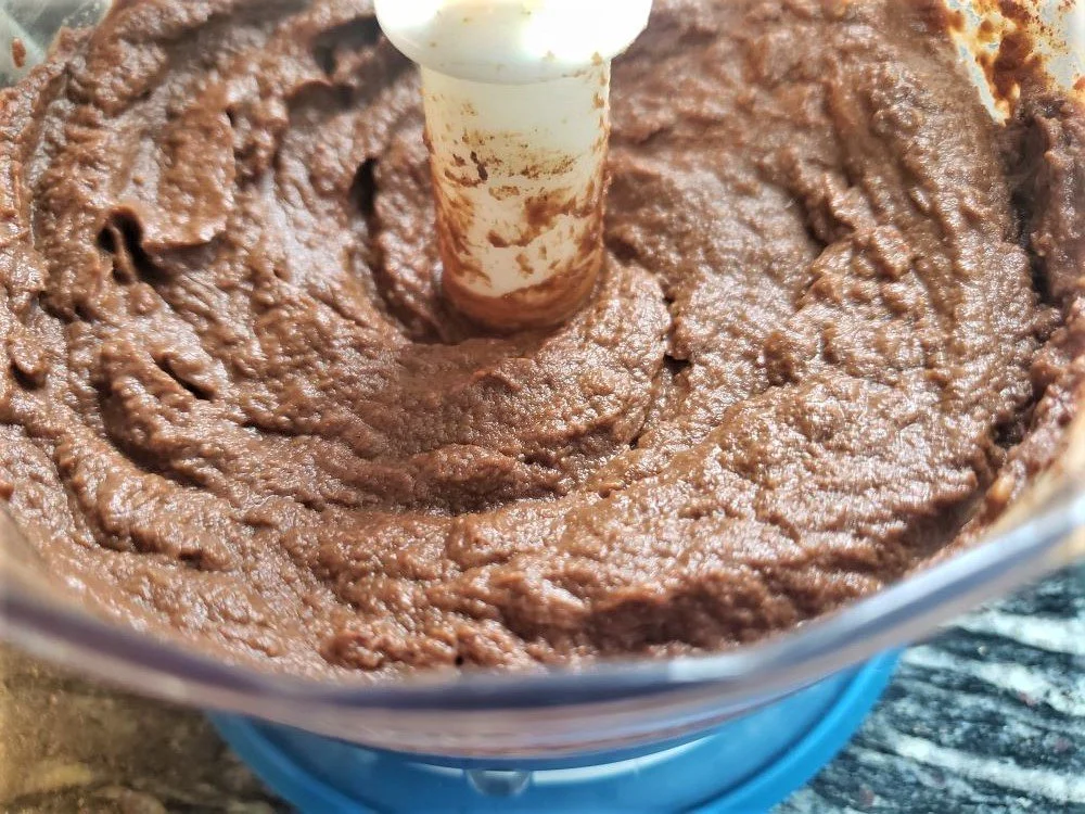 Drain well and when cool, add the cooked sweet potato with all the other ingredients to your food processor and blend until smooth. You may need to scape down the sides to make sure all the ingredients are mixed together well.